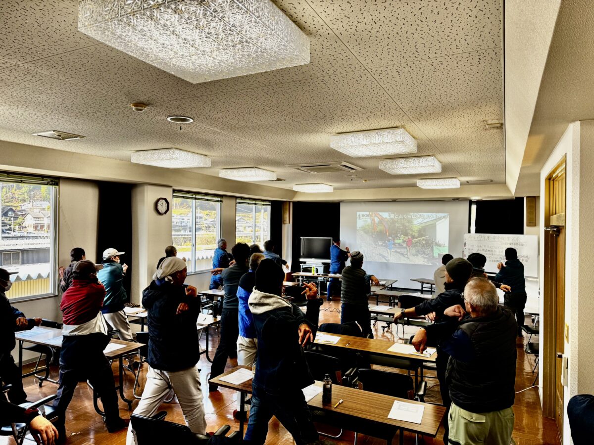 当日は株式会社きこりの大高社長と共に、「林業の職業病予防」をテーマとした実践的な「きこり体操」、効果的な身体づくりのポイント、それらを組織として仕組み化する事例などを共有いたしました。